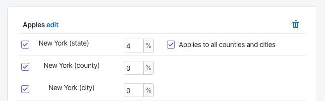 Thanks for getting back to me. This is such a perplexing set up. Yes, and when the box is checked for “Applies to all counties and cities”, the tax rate is overridden and charged flat across all State, County and Local taxes.