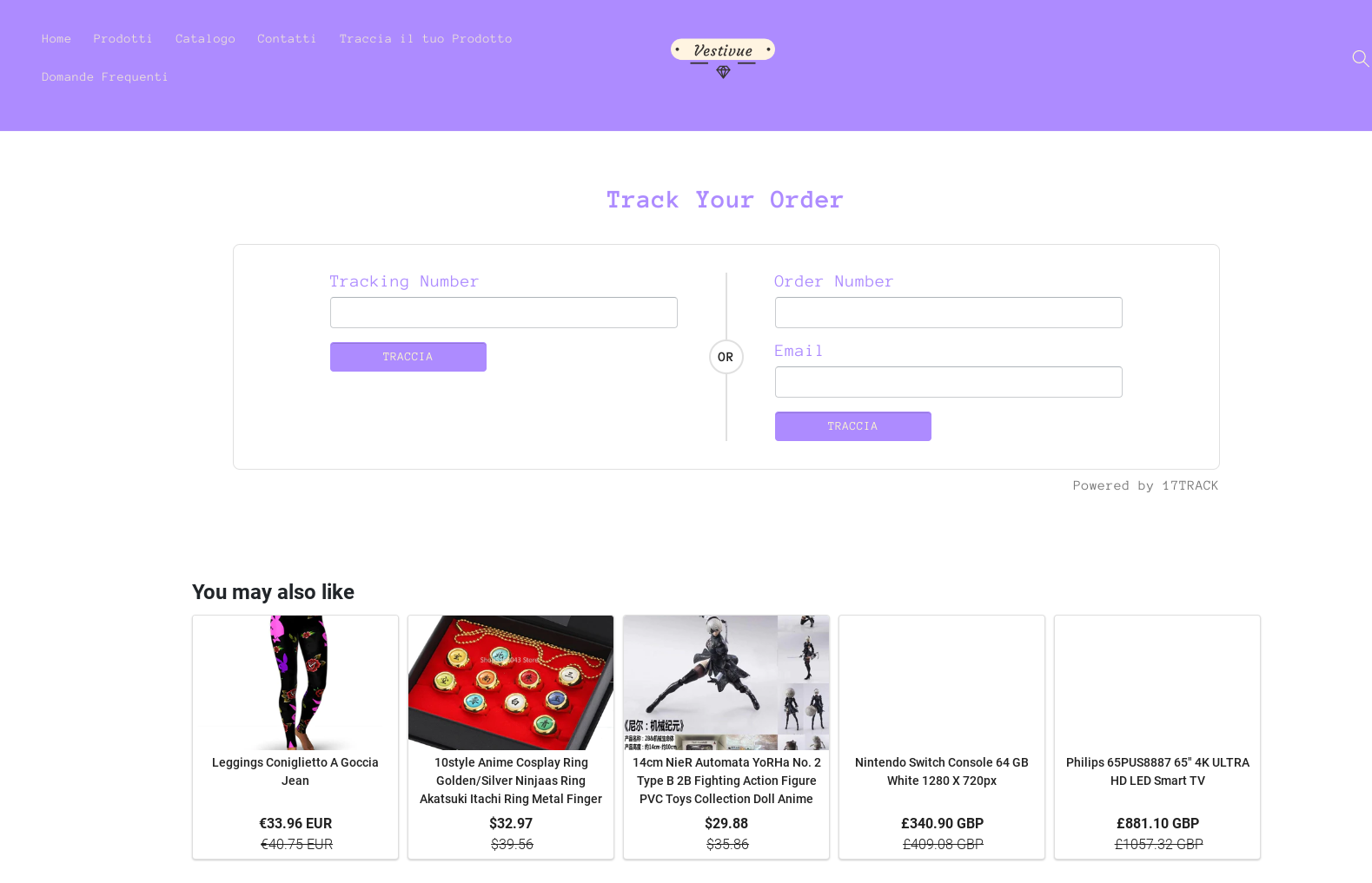 Nella pagina “Traccia il tuo prodotto”: viene fuori un suggerimento di prodotti, totalmente decontestualizzato dall’ idea principale, che viene sulla home page; Nella home infatti si cita l’ abbigliamento, cosa che fa pensare appunto al commercio di abiti, trovo un pochino fuorviante la proposta di questi oggetti (anelli anime, bambole che riproducono anime, etc).