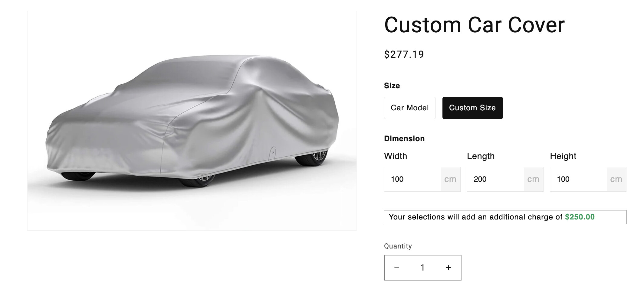 Variant 2: I would like my customer to be able to put together the product in the size himself. For example, he enters a 20x20 cm and based on the dimension the price changes.