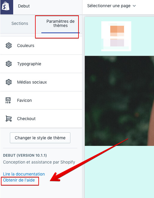 Il y a possiblement une ligne de code qui fait défaut quelque part dans votre thème. Puisque c’est un thème développé par un partenaire et non par Shopify, le mieux serait de contacter les développeurs du thème puisqu’ils le connaissent bien et aurons plus de faciliter à trouver le code fautif. Vous pouvez trouver leur information de contact sur la page du thème dans notre Theme Store, ou bien lorsque vous êtes dans l’éditeur de thème, cliquez sur Paramètre de thème et cliquez sur “obtenir de l’aide”.