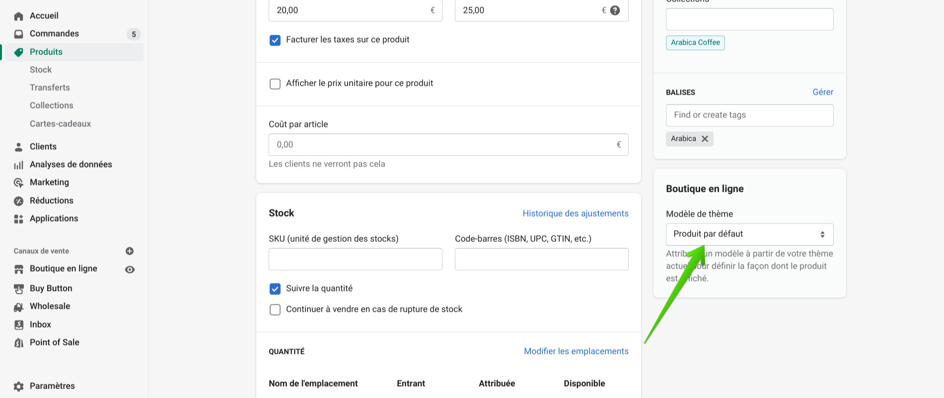 J’utilise le thème CRAFT et je souhaiterais paramétrer la page “produit par défaut”.