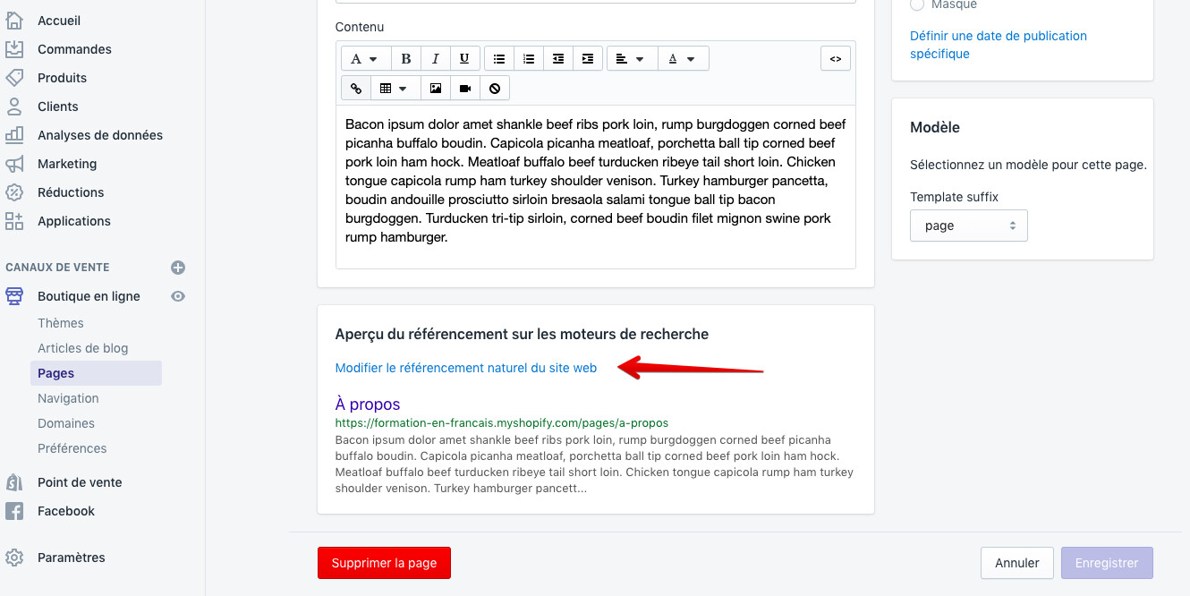 Si vous utilisez une Application pour optimiser votre SEO, assurez-vous aussi que les paramètres des titres SEO n’ajoutent pas le nom de votre boutique au début du titre. Pour la même raison que vous ne voulez pas avoir un duplicata de nom de boutique dans ce titre lors d’une recherche dans un moteur de recherche.