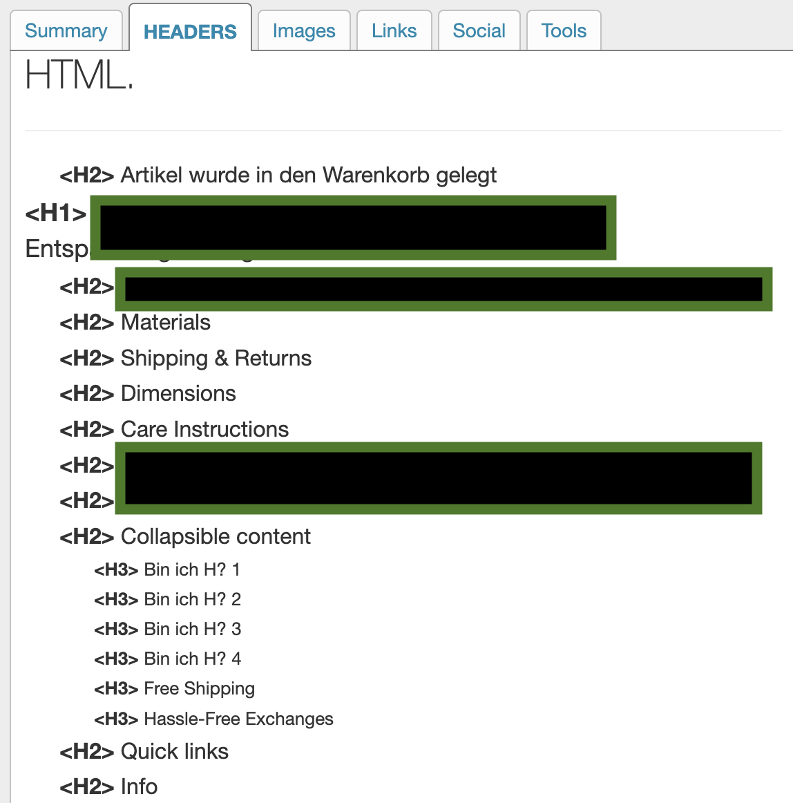 Aber sind sie das im Internet des heutigen Stands der Technologie? An erster Stelle, hat Shopify und alle Shopify Themes bereits ein Hx Tag System eingebaut, dass für SEO optimiert ist. Hier würde ein Eingreifen in das bereits bestehende System nicht viel helfen und sogar einen möglichen gegenteiligen Effekt auslösen. Viele verwenden diese Online SEO Prüfungstools die oft “false negative” Ergebnisse ausgeben, wie "fehlende H1-Tags" oder “H1-Tags müssen hinzugefügt werden” oder “doppelte H1-Tags müssen entfernt werden” auf verschiedenen Seiten im Theme, am häufigsten auf der Startseite.