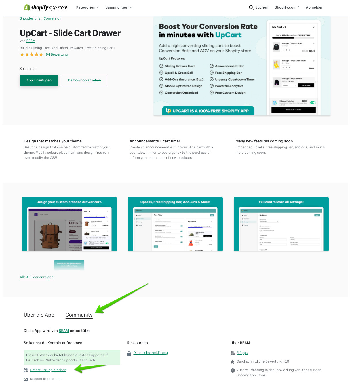 Für Unterstützung für Apps von Drittanbietern wie Ymq Free Product Tabs, wendest du dich am besten direkt an die Appentwickler, deren Kontaktdaten findest du auf der Appseite in unsererm Appshop:
