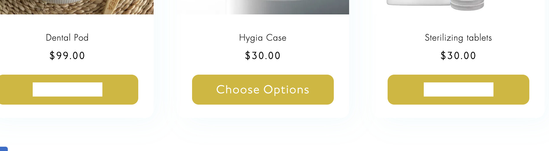 A Shopify store owner encountered white boxes appearing around βadd to cartβ text on their featured collection page at Hygiadental.com.