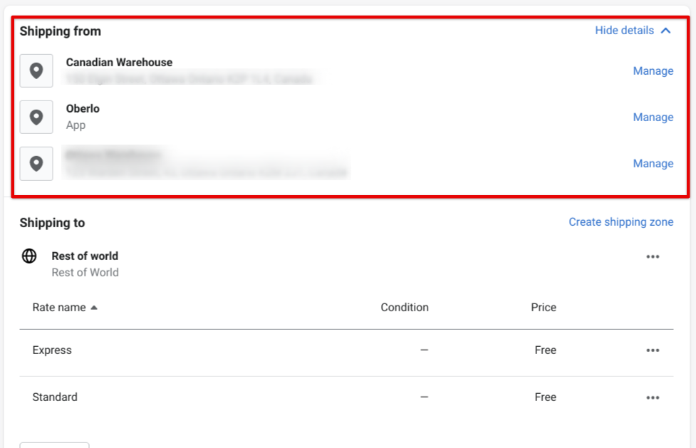 You can confirm the location that you are offering shipping from by navigating to your General Shipping Profile and selecting Manage Rates.