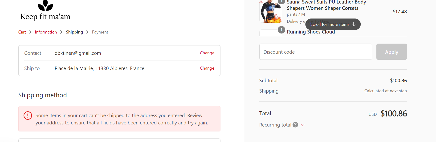 To gather some more context, is this message occurring only for your customers in France? The first thing I suggest is to ensure that you’ve set up your shipping to include your desired shipping zones. Customers can order products from your store only if the country or region where they want the order shipped to is included in one of your shipping zones. You can look into this by going to Settings > Shipping and Delivery > Manage Rates.