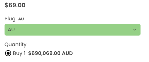 i have set the price as $69 but as soon as I click add to cart it changes to this