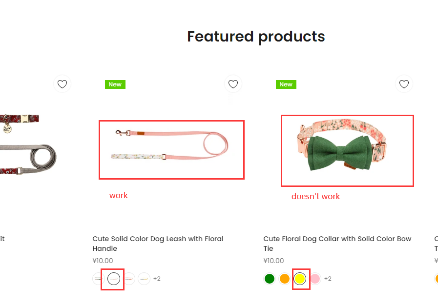 When I use pic for variant selection , it goes well. But when I use color for variant selection, the pic won’t change( on homepage and collection page). How can I fix the problem?