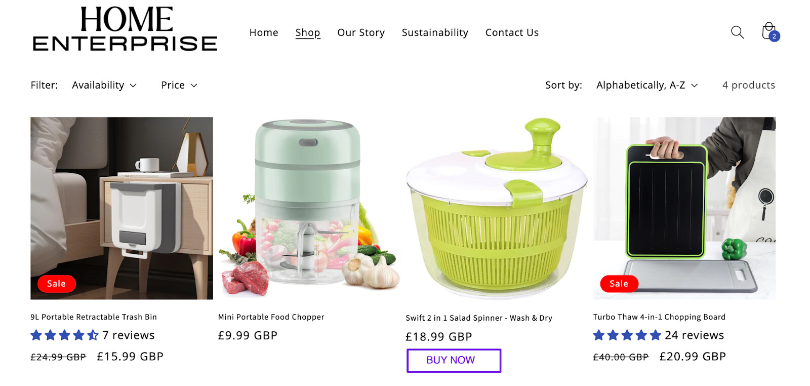 Highlights the store’s customer service policies, such as its return policy and shipping policy. This information could help to reassure potential customers that they can shop with confidence at Home Enterprise.